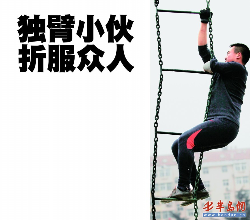 伤残小伙单臂爬软梯