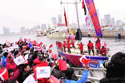 白日放歌须纵酒,青春作伴好还乡。昨天上午,承载着 “帆船之都”荣耀与梦想的 “青岛号”在经过21天艰苦的航行,完成2011-2012克利伯环球帆船赛新加坡站至青岛站比赛后顺利抵达“母港”奥帆中心,顿时引爆了现场的激情。市人大常委会副主任徐航、副市长王修林与数千名岛城市民一同欢迎 “青岛号”回家。青岛奥帆城市发展促进会常务副会长、市重大国际帆船赛事(节庆)活动组委会副主席臧爱民致欢迎辞,并为“青岛号”船长伊恩·康吉披上了象征凯旋的红色披风。
