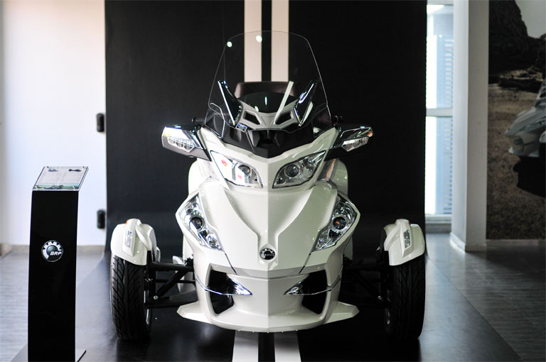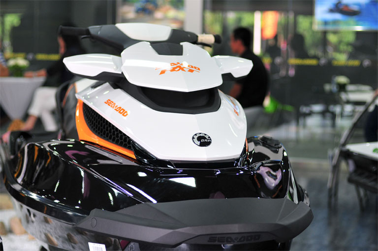庞巴迪展厅展示庞巴迪娱乐产品旗下三大品牌——Sea-Doo摩托艇和Can-Am全地形车SPYDER蜘蛛侠三轮敞篷跑车。目前Sea-Doo摩托艇方面展示了蓝海游艇所有的现货摩托艇,展示型号将随现货变动情况进行更新。而Can-Am全地形车方面展示了ATV和SSV,SSV是今年推出的最新款排座式全地形车——独行侠,ATV展示的型号是开拓者1000R。