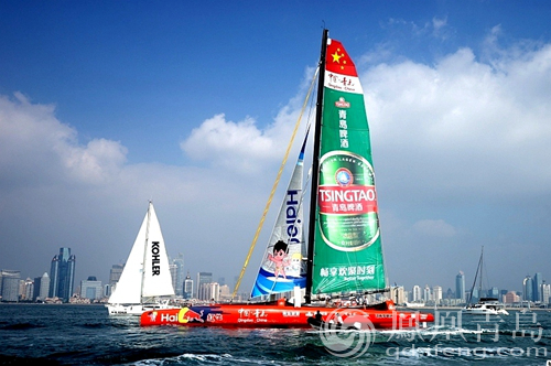 “中国•青岛”号帆船从母港青岛启航(摄影:王祥胜) 10月21日上午,“中国•青岛”号从母港青岛出发,开启“启航蓝色梦扬帆新丝路”青岛21世纪海上丝绸之路帆船航行活动。 据了解,本次海上丝绸之路的航行,青岛帆船名将郭川将再次作为船长率“中国•青岛”号出航,船队队员包括中国女子环球航海第一人——宋坤以及多名国外顶级帆船选手,他们组成的国际团队将驾驶中国•青岛”号超级三体大帆船,经停上海、广州、香港、新加坡、斯里兰卡美瑞沙、印度孟买、埃及亚历山大、意大利热那亚、摩纳哥9个城市,历时两个月向各地市民推介青岛、宣传青岛,每个停靠站点,都将举办丰富多彩的推介活动。