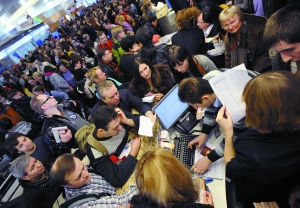 莫斯科连降冻雨 数万乘客滞留机场“暴动”