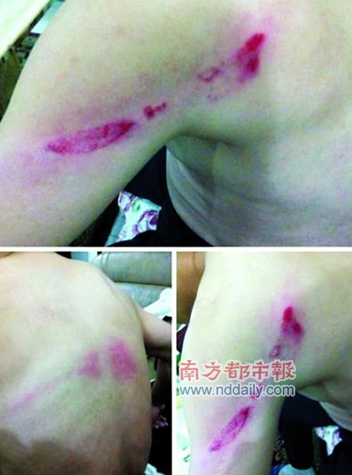 这位运政执法领导的左肩被打得皮开肉绽,后背也被打得红肿。图片来源于网络 ■热闻快读 长安黑出租车乱象未平,虎门又现“疯狂黑出租车”。昨日,一条题为“疯狂出租车现虎门”的微博在网络上疯转。微博内容显示,一名男子在虎门误乘假的士,对方不但拒绝打表,还把该男子拉到路边,叫来十余个假的士司机用铁棍等工具围殴他。更具戏剧性的是,南都记者随后核实到,被打男子竟然是东莞市交通局一名运政执法领导。 东莞黑出租车问题再度引发关注。运政人员称,打击黑出租车不只是交通部门的事,需要交警、公安和各级政府等协作,解决制度问题,一起打击黑出租车。 记者调查 被打者:怀疑被认出身份遭报复 为了核实这一消息,南都记者多方求证最终得知,原来这名被打的“父亲”是东莞市交通局一名运政执法领导。 发现没有计价器要求停车 昨日下午,南都记者在虎门交通分局见到了这名运政执法领导。他掀开衣衫,露出背上的伤痕,与微博图片上的伤完全一致。该领导说,他虽然在市交通局上班,但家住虎门。13日晚上8时许,他在虎门黄河时装城附近和朋友一起吃晚饭,由于喝了一点小酒,就准备打车回家,恰好看到路边停着一辆蓝色出租车,就坐了上去。 “那辆出租车装有顶灯,也有‘空车’标志,从外表看起来跟真的出租车一模一样。”该领导回忆说,他家离黄河时装城很近,基本上不用跳表、车费在10块钱之内,但那名司机开口就说“20块钱,不打表”,他随即发现那辆出租车没有计价器,马上判断这是一辆假出租车,于是要求司机停车“我不坐了”。 拔下对方车钥匙想报警被打 但出乎他意料的是,司机不但没有停车放他下来,反而加大油门往前开了数百米,而且用对讲机呼叫熟人,最终在穿过富民桥后停了下来。“我当时出其不意,把他的车钥匙拔了下来,拿在手里下了车。”该领导说,他这么做是出于职业经验,把对方车钥匙握在手里以便报警处理,然而没想到的是,他刚一下车,从旁边几辆出租车上就冲下来十来名男子,手持砍刀和钢管,围过来对他一顿猛砸,“我的右手背、左肩膀和后背都被他们用钢管打伤了,幸亏没有用砍刀,整个过程持续了3分钟,我大声喊人帮忙报警”。 女儿气愤不过将照片传上网 “我最后冲出重围,跳上附近一辆正规出租车,回到家里。”该领导回忆,家人随后将他送到医院检查,发现其身上多处软组织挫伤,他女儿对此事气愤不已,于是将他的伤口拍照发到微博上去了。 该领导事后分析,他怀疑自己是被假出租车司机认出来了,这才遭到了对方的报复。“打击黑出租车是我的职责所在,以前很多次查处行动中,我都在电视中抛头露面,很多出租车司机都认识我。”他表示,这次意外遭遇更加坚定了他打击假出租车的决心。 微博爆料 搭上黑的士被打得皮开肉绽 @流行虎门:微友@ BABYTUTU父亲于今晚(11月13日)乘坐的士,上车后要求打表,但遭拒绝,后来发现是假冒的士,该微友父亲马上要求落车,但司机不但没停车,去到富民附近还叫来十几个假的士司机用铁棍等工具围殴他,该微友父亲拼命跑,叫了另外一部车才得以逃脱啊。太恶劣了,求整治! 13日晚10时53分,新浪博友@流行虎门发布了一条微博,称一名网友的父亲乘坐假的士遭到殴打。当晚11时45分,@流行虎门又补充:该微友(@BABYTUTU)的父亲原来是执法人员,其由于发现的士是假冒而遭到暴打。从这条微博中贴出的图片可以看到,这位父亲左肩被打得皮开肉绽,后背也被打得红肿。昨日,该微博被网友转发700余次,评论100多条,成为东莞最热门的微博话题之一,不少网友对假的士以及各种出租车行业乱象表示抗议。 |