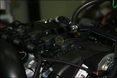 在参观过程中,厂房特意安排体验了一下TSI发动机的平稳特性,将一个一元硬币竖立放在一台在台架上运转的发动机上,硬币稳稳的竖立着。