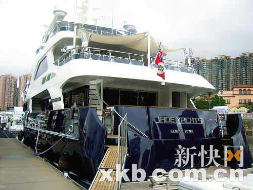 本届香港游艇展上最瞩目的首推造价高达7700万港元(约合人民币6800万元)的Jade95Explorer,船身长95尺,共4层,为全场最昂贵、体积最大的豪华游艇。该游艇为台湾龙头游艇制造商中信造船集团的出品,船身以钢铝打造,极为罕见。