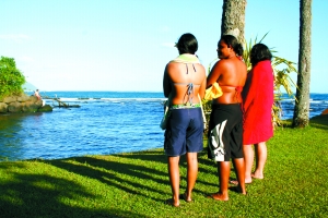 Tiare(蒂阿瑞)———这是一种香气芬芳的白花,这里的人说,只要你闻过这种花香,不论走得多么远,最终还要被吸引回岛上去。Tiare是法属波利尼西亚的国花,这个国家118个岛屿上的每家度假村都会用它来迎宾,一边说“友—奥—拉—纳”(你好)一边把又香又白的花环挂向你的脖子,Tiare也经常被夹在耳朵上,未婚女人戴左边,已婚女人戴右边,不过这点区别很容易在情欲旺盛的南太平洋上被有意无意地忘掉。Tiare虽香却只有茉莉花的大小,当地人的采摘时间是早上5点和下午4点。不过白天,女士们总是情不自禁地走向不收费的花丛,摘下碗口大的俏丽红花插向耳际,任性地表达对禁果的欲望。