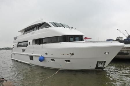 一艘造价不菲的乳白色豪华游艇游弋在碧波荡漾的黄埔江上,两岸的美景犹如一幅水墨画时卷时舒…… 由上海红双喜游艇公司建造的Norseman 79英尺大型豪华游艇的顺利下水。Norseman 79是由国内建造的最先进、最奢华的大游艇。