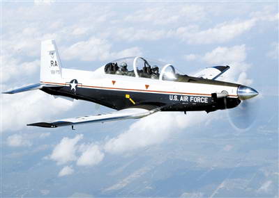 图片来源:中国航空报 韩国航宇工业公司研制的KT-1教练机重2422千克,装一台708千瓦的PT6A-62A发动机。目前已经有80架KT-1和20架KA-1被交付给韩国军队。经过加拿大和美国政府的允许后,韩国向印尼出售了12架无武装的KT-1B,同时赢得了土耳其空军40~55架KT-1T的订单,这些飞机将按许可证方式在土耳其生产。KT-1系列的最新的型号被称作KT-1C或XKT-1。 2009年初,印度斯坦航空公司开始研制一种新型涡桨教练机,用来取代老式的HPT-32活塞式教练机。 美国空军参谋长诺顿·施瓦茨将军最近表示,美军需要一些涡桨教练机来执行反恐、镇压叛乱一类的低烈度作战任务。可能满足上述需求的机型包括豪客比奇公司的AT-6B和美国飞机公司的A-67。 目前,美国海军不对称战争办公室正在对租借的一架“超级巨嘴鸟”进行评估,这架飞机可能是由黑水保安公司的子公司EP航空公司购买的。为赢得美国的订单,巴西航空工业公司正考虑将“超级巨嘴鸟”的生产线搬到美国的佛罗里达州,该公司的“飞鸿”公务机也在这里进行生产。