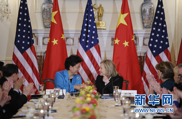 话音刚落,她的肩头多了一只示以安慰的手——这是坐在她旁边、与她一道主持会议的美国国务卿希拉里,随后她向刘延东低头耳语,刘延东一直微笑表示感谢。