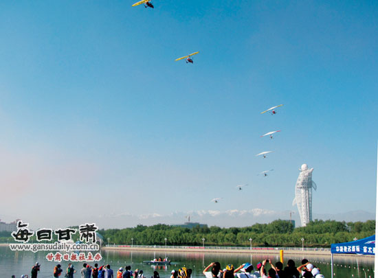 7月24日晚,历时3天的2011中国嘉峪关航空滑翔节在完成预定的竞赛项目和各项精彩表演后圆满闭幕。中国动力三角翼运动队滑翔飞行运动员张波以2925分的总成绩获得中国首届动力悬挂绕标竞速比赛的冠军。