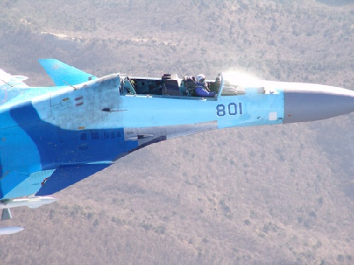 801号苏-35UB战斗机起飞后被近距离拍摄的座舱部分 来源:千龙网