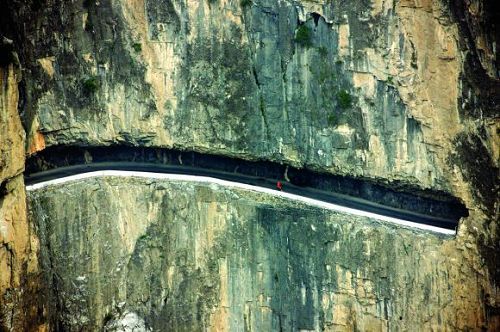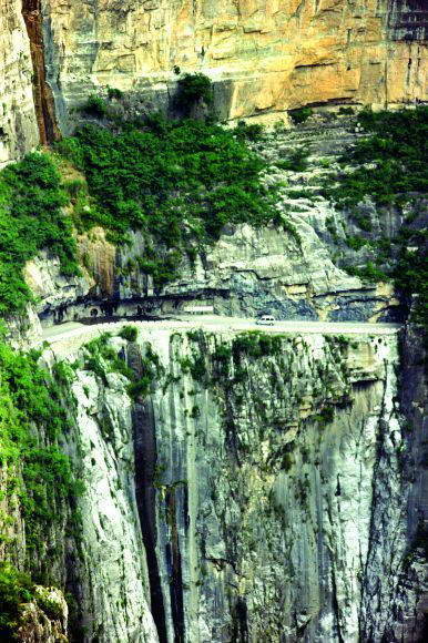 “挂”在悬崖上的公路