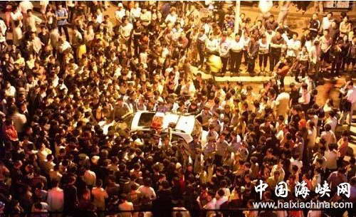 6月11日18时40分,马鞍山市花山区旅游局局长汪国庆开车行至湖北东路大润发卖场附近,与行人胡某发生口角纠纷,并动手打了胡某。围观的人数从几个、十几个,迅速升至几百、几千,整个大街堵得水泄不通,将这位局长大人和一位女士堵在轿车内,不能离去。最后不得不“请来”马鞍山市委书记和市长及几百名防暴警察帮他解围,开出的条件是,他这位局长的乌纱帽当场被撸去,还得被拘留关进看守所。