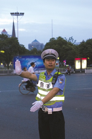 王宇正在指挥交通。战斗 摄