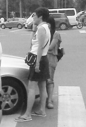 几名女子站在车旁,其中一名女子身高约1.70米,戴眼镜,穿一双鞋拖站在副驾驶室附近。起初这名女子与另外几名女子交谈,而后便大喊:“队长,你们什么时候能把我的证件给我,我这儿着急。”