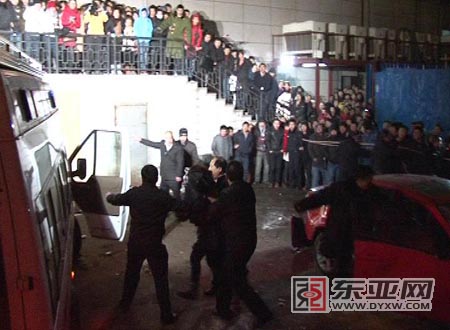 16时48分,警方又派来一辆警车,车上两位民警喊话:“我们是朝阳分局的民警,这件事警方一定会依法处理,请站在两旁的市民让道。”这时其中一位穿夹克的男子大喊:“你爸不是李刚,你赶紧从车里下来。”此时能看到车里面还打着暖风,一对男女呆呆地坐在车里。