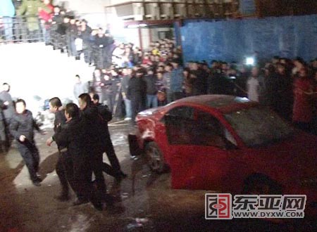 气愤群众怒砸轿车 本组图片 记者 郭全忻 助理记者 赵飞 摄