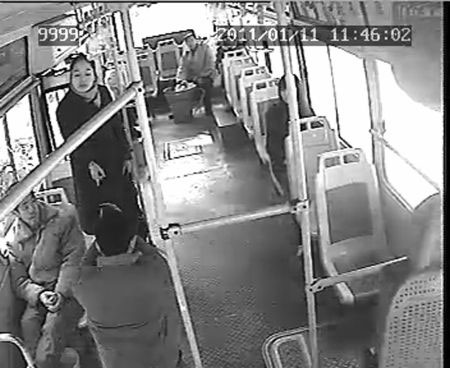 12日中午11点43分30秒,由于已接近终点站,车上只有五六名乘客。靠后车门的位置上,一名围着粉红围巾、穿中长大衣灰色西裤的年轻女士站起身,朝车外张望。“师傅,停一下,我就在这里下。”