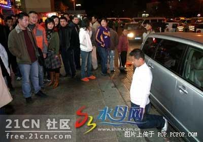 在现场,远远地就看见门前围了一圈人,人群中间有个穿白毛衣的小伙子神情忧郁,正疲惫地跪在台阶上,眼睛却一眨不眨地望着百盛的大门。
