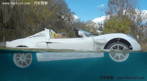 由于位置过高,在水面漂浮时喷射推进装置无法发挥作用。因此在这种状态下动力来自车尾的两个螺旋桨,驾驶员可以通过左侧的两个拉杆对其加以控制。这恐怕也是莲花爱丽丝唯一没有操控性的情况了。 不过这并不是坏事。车头劈开的水花可能会让你想起驾驶路虎涉水的经历,但回味激情驾驶显然有些不合时宜。穿行于游船之间享受日光浴才是最好的选择。 如果不喜欢这种悠闲的方式,潜入水中绝对可以给你带来前所未有的刺激。降下车窗并打开密封车门的泡沫后,水会缓缓的流入驾驶室,但很快水流就变得湍急起来,同时Squba开始下沉。