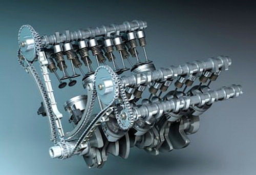 顶置式气门与顶置凸轮轴(OHC): 发动机的凸轮轴安装位置有下置、中置、顶置三种形式。轿车发动机由于每分钟转速可达5000转以上,为保证进排气效率,都采用进气门和排气门倒挂的形式,即顶置式气门装置。 现代轿车发动机将凸轮轴配置在发动机的上方,相比中、下置更为合理。既缩短了凸轮轴与气门之间的距离,又省略了气门的挺杆和挺柱,将发动机的结构变得更加紧凑。更重要的是,这种安装方式可以减少整个系统往复运动的质量,提高了传动效率。