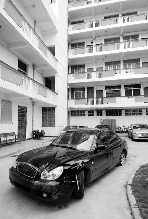 “车进门后继续右拐,拐进了一个角落。”地质工程勘察院的门卫说,这辆车开进来的时候,前大灯和引擎盖都被撞得破破烂烂,左后轮就只剩钢圈了。“开进来时还能听到咔啦、咔啦的声音。”