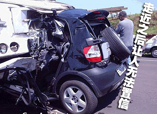 鸡蛋碰石头的后果 大众Fox与卡车惨烈车祸