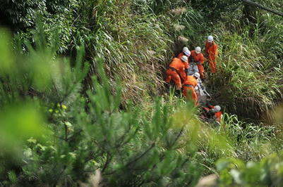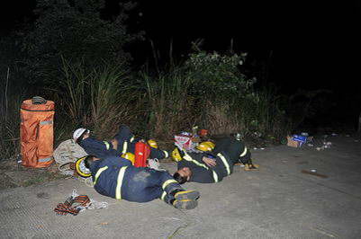 ![]() 睡在地上的消防战士 东南快报7月6日报道 “找到了,找到了,压在面包车下!”昨日上午11时55分,当残破不堪的面包车车体被缓缓吊起时,最后一名失踪人员61岁的刘世谦被找到,搜救人员激动地叫起来。 4日下午4时许,一辆旅游车行至德化水口镇昆坂村往省委旧址地段下坡处发生翻车事故,车辆坠入100多米深的山谷中,造成重大人员伤亡。截止昨日上午12时,德化旅游车翻车事故已造成9人死亡(其中女性3人),3人受伤,事故原因仍在调查中。 据了解,当日是泉州某公司组织近50名员工到石牛山开展活动,当车辆到达石牛山下时,根据当地旅游景区的规定,换乘5辆面包车,当到达省委旧址附近几百米的路段时,一辆面包车突然冲下悬崖。 生死营救20小时 “大概下午4点左右,我们坐在外面泡茶聊天,远远看到有四五辆车进来。就在一个拐弯口,一辆白色的车车轮卡在了路边,也没看见有人下车,不懂怎么回事,车子一下就冲了下去。‘轰’一声,车子起火冒烟了。”坂里村的村民陈友会是事故发生时的目击人之一。他说,他们看到车掉下去后,迅速在附近叫了20多名村民一起下山救人。接到报警后,当地镇村干部组织的首批救援人员也在七分钟后赶到现场救援。 “绳子系在路边大树上,另一端系着两个伤者的腰。”村民陈孝发也参与了救援。他说,下去救人时,他们发现有一名男子由于腿部骨折,无法动弹。救援人员和医生下去后,先给伤者吊瓶,当日晚上7时19分才将男子救了上来。经了解,那名男子就是司机,随后,司机被送往德化县医院抢救。 “当时,我看到的就有四个人死了。”据陈孝发介绍,他下去以后,发现那辆面包车被石头和大树卡住,有七八个人被甩出老远,在往下100多米远的小溪附近。 5日零点,通往事发地点的山路已经封闭,搜救部队还在山上待命,这里也成了事故现场临时救援指挥部。 “山谷太险,晚上根本无法搜救,计划今早5点再次下山救援。”一位指挥救援的当地官员说。5日凌晨5时,警灯开始在山间不停闪烁,睡在地上的救援队伍兵分多路,开始下山寻找失踪人员并清理现场。谷底时不时传出救援人员喊话的回响“再下来两个人,带担架。”,“上面的人,快拉绳。” 昨日上午7时15分,第一具遇难者尸体被6名消防人员从山谷拉出,抬到了山坡。随后,每隔约一小时就有一名遇难者尸体被运出来。11时50分,救援人员在事故车辆下面发现了最后一名失踪人员的尸体。 当日下午2点,救援部队陆续撤离现场,陈友会和几位村名还在山坡上忙着吊运事故车辆。 下午2:30,搜救人员吊起了坠落山谷的面包车,由于被石头和大树卡住,车体已经变形。 事故原因: 车轮陷小沟致悲剧? 昨日下午,在事发现场附近,记者看到了一处水泥路面车轮刮痕,其后面还有一条条车轮陷进去的痕迹。“这是车冲出山崖前在路沿刮出痕迹。”据附近的村民介绍,他们在救援过程中了解到,事发当时这辆旅行车在行驶到公路转弯处时,右后车轮不小心陷到了水泥路面旁边的一个小沟内,旅行车司机原本想踩一下油门让车轮移出小沟。 “可能油门突然踩得大了,旅行车一下子就冲出山崖。”村民们说,从现场的车轮痕迹看,司机当时可能也已经小心地试了好几次。而且,在旅行车冲出的地方刚好是一个90度的转弯道,前面没有栏杆,车子一下子就冲出去,结果导致悲剧的发生。 昨日,德化县相关部门没有对这起事故原因作出任何回应,只对外称事故原因仍在进一步调查。 记者调查: 多处急弯道没护栏 相关部门互相推诿 “这条景区道路太危险了!迟早会发生事故!”昨日下午,德化县水口镇昆坂村的村民告诉记者,这条原本是镇里的一条山路,在石牛山景区开发后,就成为景区的重要通道。但是,这条景区道路宽度只有4米左右,沿途却有连续多个陡峭弯道,而且旁边没有安装防护栏杆。 记者的采访车从水口镇沿着通往石牛山景区的道路行进,十几分钟后,4米宽的水泥路开始变陡,在通往景区5公里处路面最陡坡度达到近45度,而且连续出现两三个连续拐弯路,在水泥路的外边连棵能阻挡的树也没有,一斜眼就能看到深谷。 村民说,通往石牛山景区还有另外一条20公里长的入口通道,这条道路被规定只作为下山单行通道。但是,平常还是有不少车子从这里直接开上山。路途交汇车时,车轮就紧贴着水泥路边,十分危险。 就景区道路管理的问题,记者随后致电德化县相关部门,但均被告之不在他们的管理范围内。“这条道路不属于公路部门管。”德化县公路局蔡局长表示,这条景区道路不是重要的公路,具体谁管不清楚。德化交通局长苏毅君也称,交通部门主要管的是营运道路,景区道路不在他们的管辖范围,应该由景区自己管理。德化旅游局长林志民则表示,景区道路的管理要联系交通部门才对。 “景区道路管理是镇里在管,但监管是交通部门。”昨日下午,德化县水口镇镇长连婷告诉记者,发生事故的这条景区道路原本是联系好几个村庄的道路,十年前才开通。由于常出现塌方等,单纯的养护管理已经不能适应。连婷还说,政府部门曾经想花大力气对这一特殊路段进行改造,但又考虑到大改造可能对景区的生态产生破坏,因而一直悬置中。 连婷表示,目前他们已经准备加大投入逐步对该路段进行改造,包括在危险路口设立警示标志;在弯道大的路口设置一个特殊交汇车地点;对部分路段进行适当拓宽;在技术部门指导下,对特殊