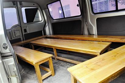 记者看到,该校车是一辆7座面包车,但车内除正副驾驶座位外,其它座位均被拆除,车内放有四条长板凳,该车的有效期从2010年9月至2011年3月,也已过期半年。