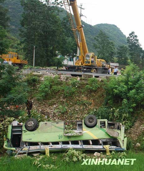 贵州境内客车翻覆4人死亡33人受伤(组图)