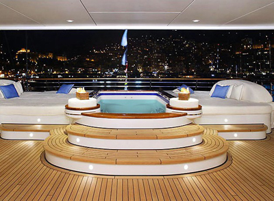 中庭的家具摆放十分正规,但显得很自然。正前方摆放着可以容纳14个人的餐桌,所有家具都采用非常好的材料手工打造,包括了名贵的木头、皮革、大理石、镀镍材料,另外还布置有青铜器皿和艺术品。所有这一切让人觉得安详和平静。Silverline公司出品的游戏桌被放置在上甲板的会客室中,可以进行多种形式的娱乐项目。 |