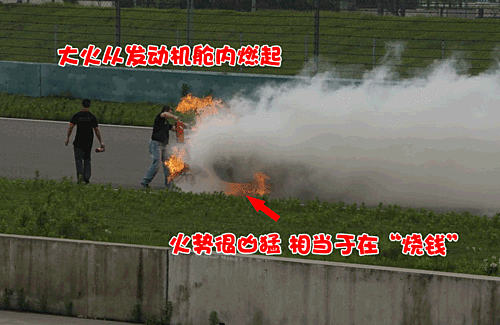 上海F1赛道“烧钱” 百万保时捷葬身火海