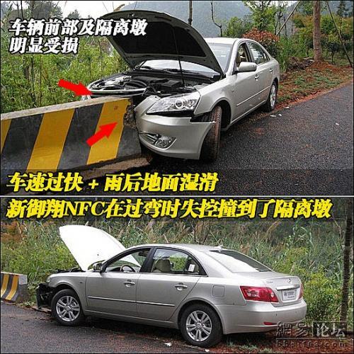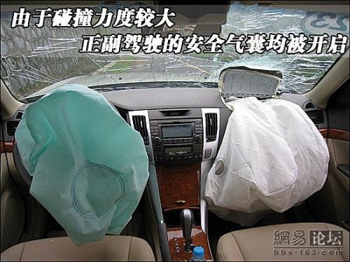 由于车速太快,新御翔在经过三次碰撞后才停止下来。此次事故碰撞角度接近45度,再加上车速太高,所以在碰撞第一次时正副驾驶员的气囊就完全开启。