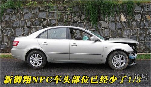 北京现代将在2008广州国际车展上正式发布全新的旗舰车型-新御翔NFC。新御翔NFC在外形设计、内饰风格和动力系统上都进行了全面升级。北京现代也在其发布之前率先在杭州举办的全国媒体新御翔NFC试驾活动,但很不幸的是在此次试驾过程中发生了两起撞车事故,车辆出现比较严重的损毁。但该车辆的较高安全性能,有效的保护了驾驶员和乘客均未受伤。