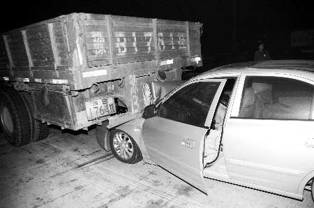 轿车钻货车下被拖10公里 车主感慨欲哭无泪(图)
